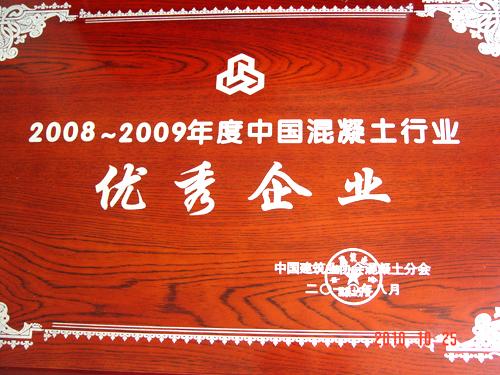日前,物流与装备成套公司被中国建筑业协会混凝土分会授予“20082009年度中国混凝土行业优秀企业”荣誉称号。