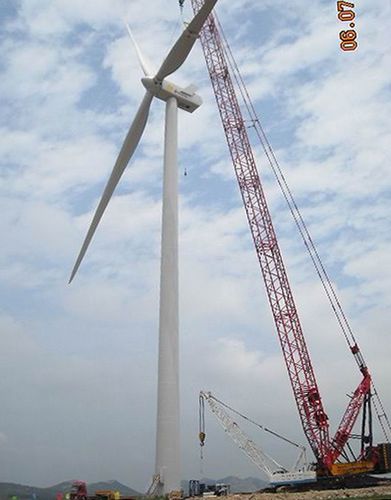 76中午12时,由风力与太阳能发电工程技术公司承建的青岛隆鑫一期风电场首台风机成功吊装完成,拉开了工程施工大干高潮的序幕。