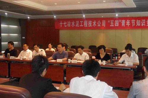59水泥工程技术公司团委在总部二楼综合会议室举办了“高举团旗跟党走”主题青年节活动,纪念伟大的“五四运动”92周年。水泥工程技术公司领导曹永忠、曹宗国、刘家宽及机关各部门负责人,各项目部团员青年近40人参加了活动。