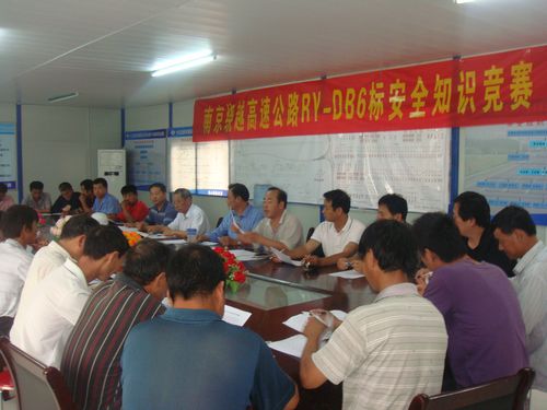 6月21日下午,南京绕越高速东北段RY-DB6标项目部举行了安全知识竞赛活动,来自项目部和各施工队的8支竞赛队伍,近百名员工参加了活动。