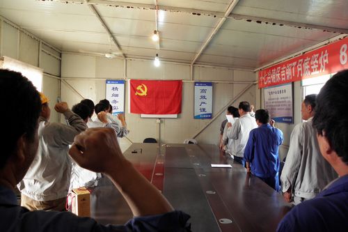 随后,党工委举行了重温入党誓词活动。项目部全体党员庄严地举起右手向党旗进行宣誓,再次提升了大家对党性的认识,增强了党员责任感。