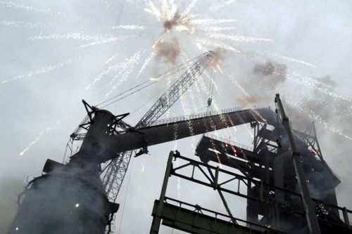 新余钢厂8#高炉下降管顺利吊装