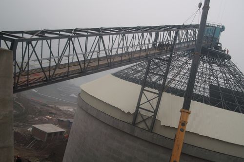 东方希望重庆水泥D线熟料库斜拉链顺利吊装成功