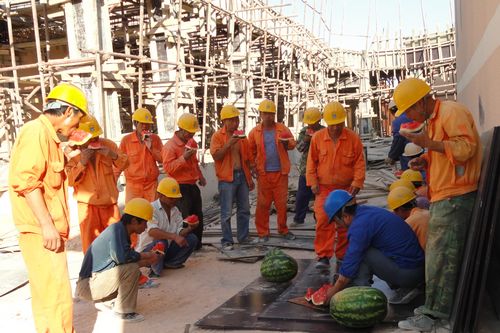 821下午,阿尔及利亚项目部党工委、工会再赴施工现场,将西瓜和纯净水等防暑降温饮品送到奋战在一线的员工手中,叮嘱大家合理安排作息时间,注意安全,以实际行动关心爱护员工。并号召大家再接再厉,确保监狱工程在9·15顺利完工,在海外打造MCC品牌。