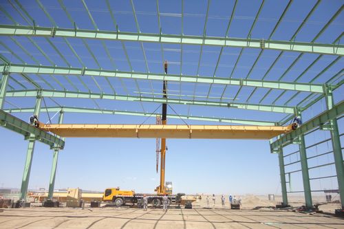 520下午,由十七冶冶金工程技术公司承建的新疆宝钢克拉玛依管加工工程两台行车开始吊装,该工程管加工车间设备正式进入安装阶段。