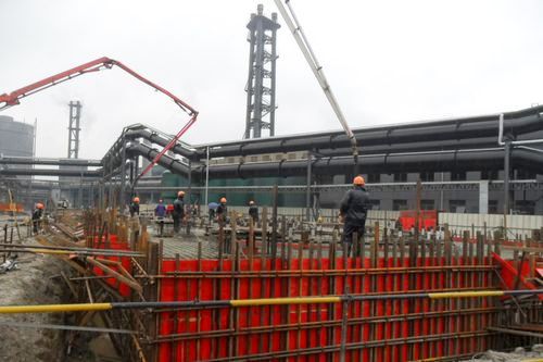 联峰钢铁3#1080m3高炉热风炉基础砼顺利浇注