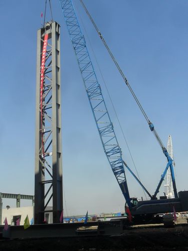 4月7日上午,由十七冶冶金工程技术公司承建的芜湖新兴铸管炼钢主厂房延伸段工程E列15线钢柱顺利完成吊装。 此次吊装的钢柱下柱重约49吨,标高28.3m,杯口基础-2.9m。为确保此次钢柱的顺利吊装,项目部精心组织和准备,对履带吊站位、回转半径、提升高度、吊臂是否卡杆进行了精确的计算,确保钢柱吊装工作顺利完成。