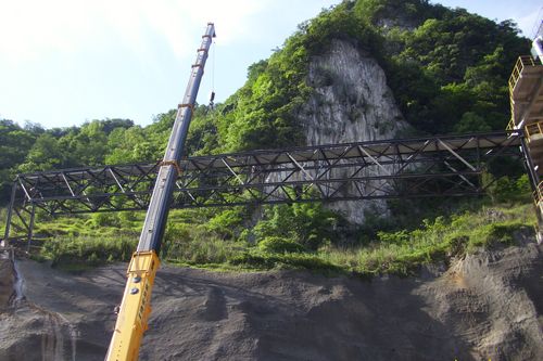 5月10日下午,由十七冶水泥工程技术公司承建的泸州赛德4600t/d水泥生产线工程隧道出口至碎石库50.7m长钢桁架顺利吊装完成。