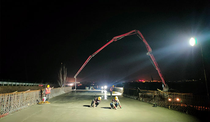 济潍高速昆仑枢纽跨线桥面混凝土开始浇筑