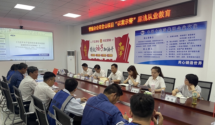6月17日上午,中国十七冶管廊分公司纪委至含山项目开展“项目管理提升年”工作落实情况督导及“以案示警”廉洁从业教育。管廊分公司纪检机构立足“监督的再监督”的职责定位,自觉履行“党有部署、监督跟进”,持续推动公司各项重大部署落实落地。十七冶纪检部副部长单冬、管廊分公司纪委书记夏仕勇、总会计师汪晓明以及含山项目领导班子成员、关键岗位人员参加了督导工作。