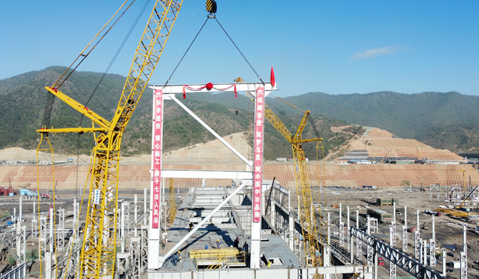 云南玉昆钢铁产能置换升级改造炼钢炼铁项目高跨顶层刚架首吊成功