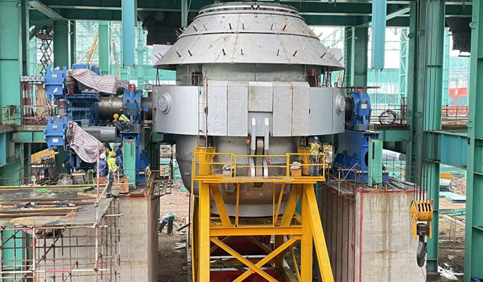 马钢新特钢1#转炉安装就位
