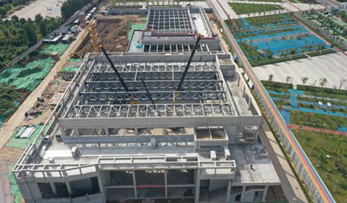 9月17日下午,由中国十七冶集团建筑工程技术分公司承建的山东庆云县文化体育中心项目文化馆钢结构主梁全部吊装完成,标志着该项目主体结构彻底完工,全面进入装饰装修阶段。