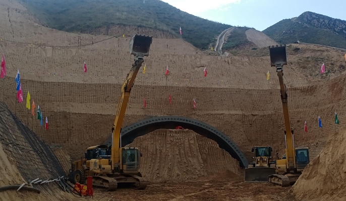 大河坪隧道是整个工程的重要节点部位之一,位于甘肃省兰州市榆中县,穿行于黄河右岸花岗岩山体,进口位于黄河右岸烧炭沟内,距沟口约3公里,出口位于小峡水电站上游,黄河东岸。隧道穿越基岩山地区,距村庄远,隧道进口沟内现有便道可供车辆通行,出口紧邻黄河,无行车通道,只能靠渡船到达,交通极为不便,需新修便道和搭设跨河钢栈桥通行。隧道为左右分离式的双洞长隧道,右线长2498米、最大埋深189米;左线长2473米、最大埋深200米。现已形成二、三两个分部分别从隧道进、出口端同时掘进施工。