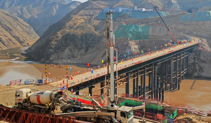 什川黄河特大桥前后连接大河坪、上河坪隧道,是连霍高速公路兰州清忠段扩容改造项目控制性工程、全线亮点工程之一。其主跨160米横跨黄河,桥型布置为(90+160+90)米三跨预应力混凝土波形钢腹板连续刚构,左幅桥长350米,右幅桥长349米。桥梁主梁采用单箱单室变截面波形钢腹板预应力混凝土连续箱梁,主墩采用双肢实体墩,下部基础采用承台接群桩基础。其中,桩基共计44根;大体积混凝土承台共有四个,单个尺寸为(13.20×13.20×4.50)米,钢筋用量71.9吨,C30砼设计方量784立方米;截至目前,特大桥桩基工程施工进度现已完成41%,承台工程施工进度现已完成50%。