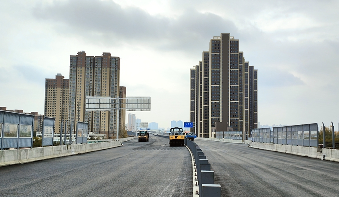 11月23日,中国十七冶集团路桥工程技术分公司承建的河南南阳鸭河工区至南阳市中心城区快速通道(城区段)项目焦柳铁路以北主线高架沥青摊铺完成。