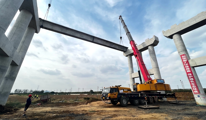 此次架设的首片箱梁为瓦日公铁立交右幅30-4号梁板,长30.1米,宽2.85米,高1.6米,重约106吨。架设前,项目团队反复研讨,考虑各种工况,提前模拟施工,制定完善专项方案和应急预案;架设过程中,架设人员分工明确、紧密配合,管理人员现场监督、严格把控,确保安全可控、质量达标。项目部将全力推进后续施工进度,向着“大干四季度,确保年目标”奋力冲刺。