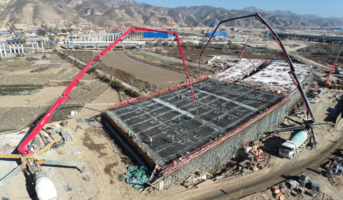 连霍高速夏官营互通大桥现浇梁全部浇筑完成