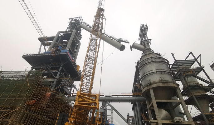 1月29日,中国十七冶冶金分公司承建的福建三明三钢本部高炉工程新2#高炉下降管顺利吊装就位。