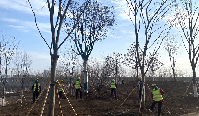 阳湖公园及水系整治项目拟建为城市综合公园,总面积约126.59万平方米,土方开挖、水体清淤、岸线构筑物浇筑等主要工作受天气影响较大。春节前夕,项目部提前策划,结合节后雨雪天气,制定复工复产计划,抢抓节内晴好天气,累计完成梅山北部彩叶园乔木种植、地形整理,阡陌花塘叠石整形、基础硬化等工作。同时,项目部通过现场驻点、无人机巡检,克服项目覆盖面广、工点分散等困难,及时解决施工问题,为大干快上提供坚实保障。
