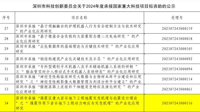 近日,由中冶华南牵头申报的《“强震区重大岩石地下工程地震灾变机理与抗震设计理论”之“强震作用下岩石地下工程动力响应与灾变机理”的产业化应用研究》项目,获2024年度深圳市承接国家重大科技项目立项。这也是中冶华南首次承接国家重大科技项目,具有里程碑式意义。