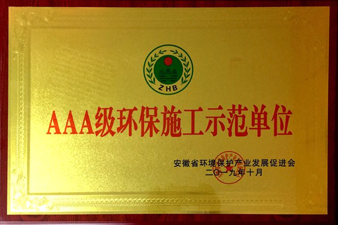 11月20日,从安徽省环境保护产业协会获悉,中国十七冶被评为2019年度安徽省“AAA级环保施工示范单位”称号。