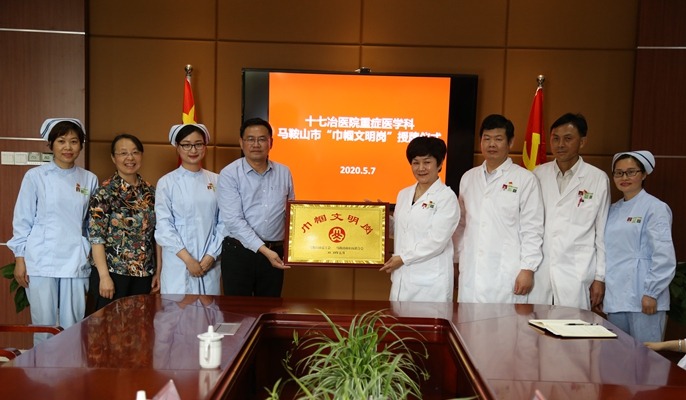 57日下午,马鞍山市总工会、马鞍山市妇联来十七冶医院为重症医学科马鞍山市“巾帼文明岗”授牌。