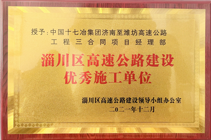 1月12日,山东省淄博市淄川区高速公路建设领导小组办公室传来佳讯,中国十七冶集团交通工程技术分公司山东济南至潍坊高速公路三合同项目部荣获“淄川区高速公路建设优秀施工单位”称号。