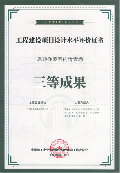 近日,中国十七冶集团工程设计分公司设计的启迪乔波室内滑雪场,荣获2022年度中国施工企业管理协会工程建设项目设计水平评价三等成果奖。