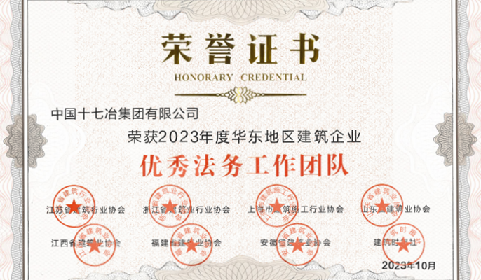 10月28日,第八届华东地区(6省1市)建筑企业法务工作经验交流会在九江成功召开。会上,中国十七冶集团法务团队获授2023年度华东地区建筑企业“优秀法务工作团队”,成为安徽省入选三家单位之一;公司总法律顾问徐家宏获评“优秀法务工作者”。