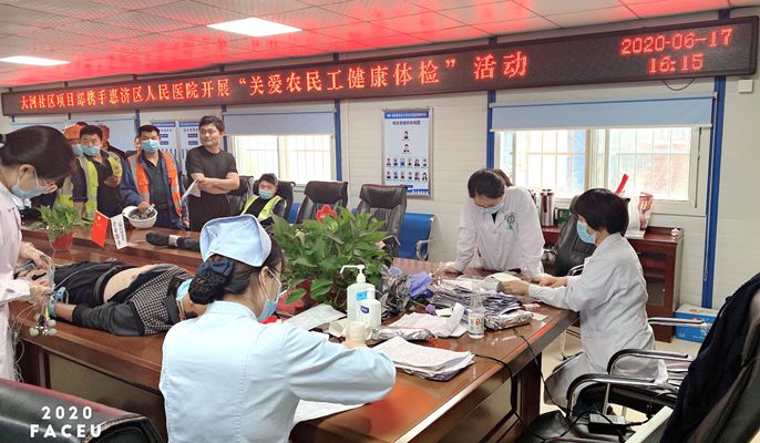 项目部始终将关心农民工身体健康作为一项重要的日常工作来抓,不断完善健康保障体系,宣传正确的健康理念,促使作业人员以良好的工作状态、饱满的热情和稳定的心态投入到工作中,确保项目安全平稳有序建设。