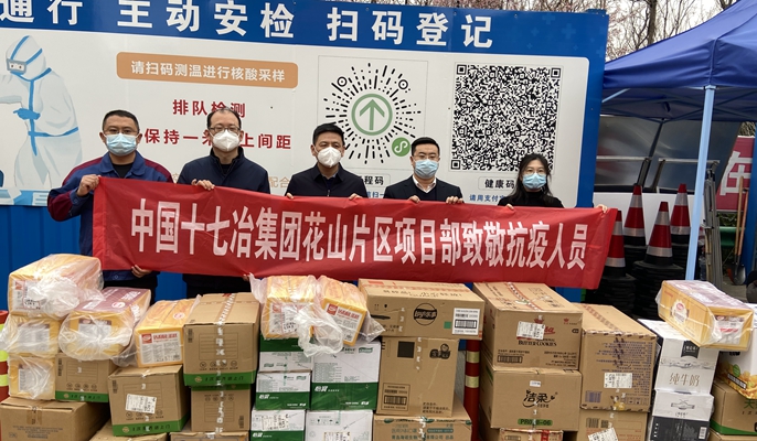 3月18日,中国十七冶集团花山片区项目部走进花山区防疫一线,送上了矿泉水、面包、饼干等物资,有效保障防疫人员的后勤生活。此次爱心捐赠活动体现了央企的社会责任担当,为打赢疫情防控阻击战提供了坚实的物质保障,得到了花山区委常委彭冬以及花山住建局的一致赞扬。