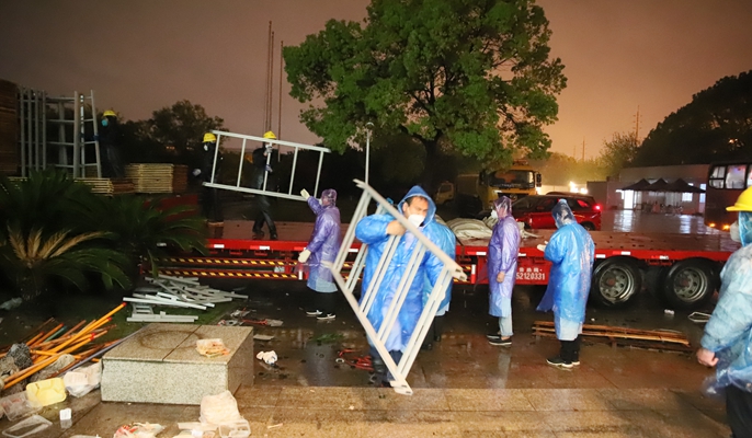 为确保方舱建设如期完成,一线作业人员的饮食保障至关重要。在严峻的疫情防控形势下,每天近2000份饭菜的采购供应是个艰巨的任务。上海分公司嘉定片区党支部书记樊贵宝为了让几百名工人吃饱吃好,紧急联系附近口碑好的大食堂超市及时供应饭菜。工地附近的大食堂供应不上再去找,直到满足供应为止。由于工作量太大,平常的供应量难以满足工人师傅们的需求,他每次都要多准备一些。同时他还多方联系超市足额供应面包和牛奶,保障夜间作业人员的补充体力。自13日起,现场气温骤降13℃,且伴有暴雨,全体作业人员冒雨完成40吨床板、支架的转运,不少人员因此着凉,樊贵宝紧急组织采购药品逐一送到他们手上,并在现场准备了充足的热水。在无微不至的后勤保障下,全体作业人员全程无休,在现场开展劳动竞赛,各区域你追我赶,用极短的时间完成了方舱建设任务。最后大家都精疲力尽,但为不给政府添负担,哪怕床已经全部装好,大家怕弄脏床铺,所有人仍然栖身于瓦楞纸板上。