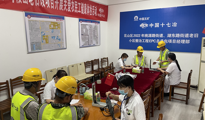 为保障现场农民工身心健康,7月4日至6日,中国十七冶马鞍山老旧小区改造项目部邀请十七冶医院体检中心医护人员为项目全体作业人员进行健康检查,确保暑天安全生产。
