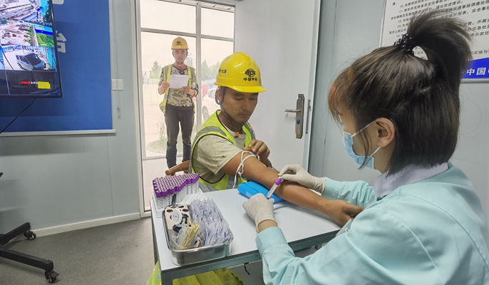 现在正值夏秋交替的季节,昼夜温差较大,项目部高度重视员工身体健康,从当地体检中心邀请专业医护人员到现场进行体检。此次体检主要为现场作业人员进行视力、血压、血常规、心电图等常规身体检查,医护人员针对每位人员的身体健康情况提出了合理建议,并嘱咐他们要注意饮食和作息,养成健康良好的生活习惯,及时预防疾病发生。
