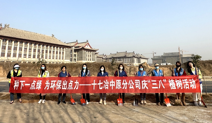 为庆祝第113个“三八”国际妇女节,增强生态保护意识,3月7日,中国十七冶中原分公司组织机关女员工前往河南大学项目,开展以“种下一点绿、为环保出点力”为主题的“庆三八”植树活动。