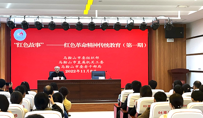 11月8日,由马鞍山市委组织部、马鞍山市直属机关工委、马鞍山市委老干部局共同组织举办的红色革命精神传统教育第一期“红色故事”开讲。市直各机关党务工作者80余人,在马鞍山市党群服务中心聆听了中国十七冶集团离休老干部齐建生为大家讲述的“红色故事”。