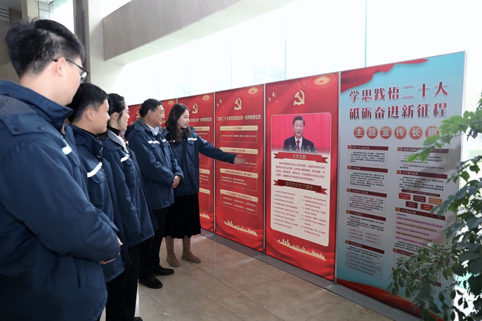 活动依托宣传展板列出的报告要点,重点阐述报告的十五个部分,重点梳理十年来党和国家事业取得的历史性成就和发生的历史性变革,深刻把握大会确立的重大方针、重大任务、重大举措,并采用要点抽问抢答等方式,加深对二十大报告的学习领会和理解掌握。参观之余,同志们还集体朗诵了“党的二十大报告”中的重要精髓语句,并收到了精心编制的《学习二十大报告手册》。党员们表示,在今后的工作中,不断将党的二十大精神转化为自身岗位进步的不竭动力,汲取智慧力量、坚定理想信念,立足本职工作、勇于担当作为,为企业持续高质量健康发展奋勇争先、建功立业,为全面建设社会主义现代化国家新征程做出新的贡献。
