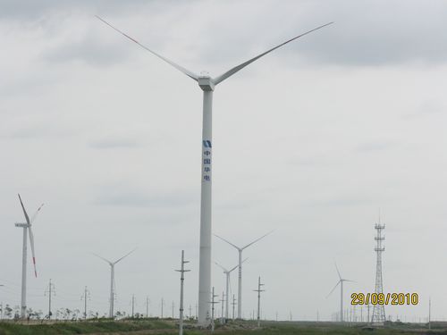 江苏灌云风力发电工程由中国华电集团投资兴建,位于江苏连云港市灌云沿海滩涂。该项目总装机容量为100MW,该风机单机容量为2.0MW,塔筒高度80m,机舱重量93.6t,叶轮直径93m,三项指标均属当年(2009年)国内之最。