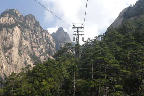 黄山玉屏索道工程下站设在慈光阁,上站设在玉屏楼,全长