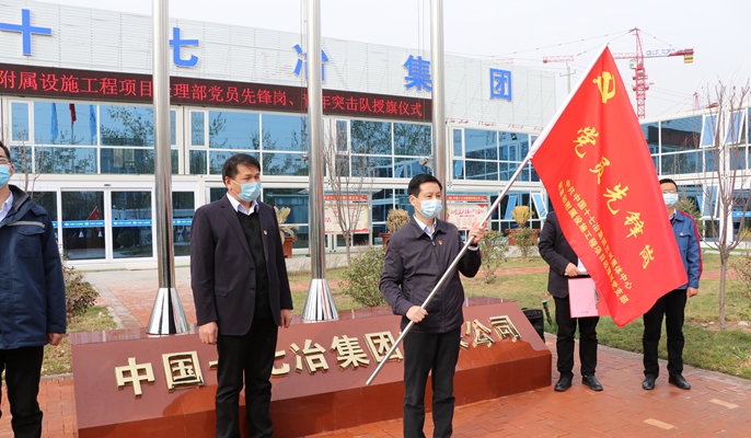 孙才文副总经济师和周中奇副部长分别为项目部“党员先锋岗”和“青年突击队”授旗。青年突击队队长薛刚刚向项目部青年员工发出《直面挑战,勇于担当,为企业发展贡献青春力量》的倡议。