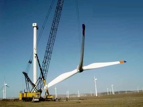 300吨履带式起重机在内蒙古草原安装风力发电机组