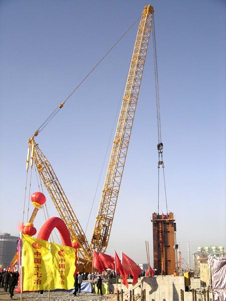 350吨履带式起重机在马钢新区炼钢连铸工程施工现场第一吊场景