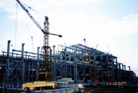 建设中的上海一钢不锈钢工程钢结构安装现场