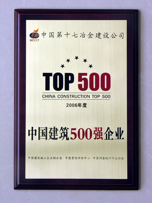记者日前从有关方面获悉:在由中国建筑施工企业联合会、中国资信评估中心和中国调查统计行业协会联合组织的“中国建筑500强”排序活动中,中国第十七冶金建设公司荣获“中国建筑500强企业”称号,位列第38位。