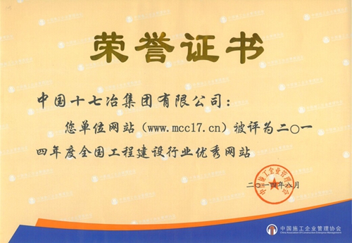 此次评选由中国施工企业管理协会组织,主要从网站内容、艺术设计、技术功能、安全管理等方面进行考核评定。通过专家组的评选,我公司网站在各方面均符合优秀网站建设要求,从而获得表彰。