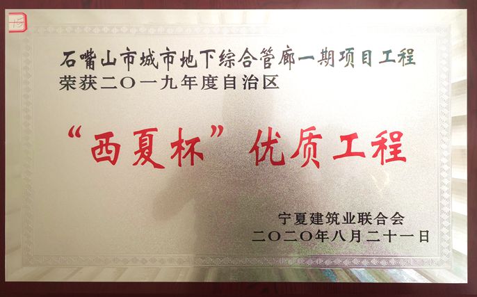 石嘴山综合管廊项目荣获宁夏优质工程“西夏杯”奖
