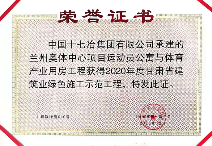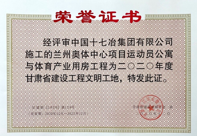 近日,中国十七冶集团承建的兰州奥体中心项目荣获“2020年度甘肃省建筑业绿色施工示范工程”“2020年度甘肃省建筑业智慧工地示范工程”“2020年度甘肃省建设工程文明工地”等称号。