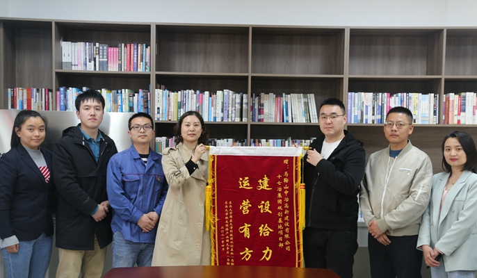 4月9日下午,马鞍山慈湖高新区城投公司和慈湖高新区双创基地招商引资企业家代表来到马鞍山中冶高新项目公司,送上了一面绣有“建设给力,运营有方”的锦旗,衷心感谢项目公司和项目部以热情高效的运营服务帮助园区招商引资企业解决实际难题。