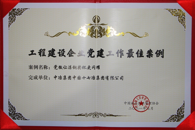 会议还发布了此前开展的党建工作案例征集宣传活动结果,经企业申报、发布交流、专家评价、网络投票,十七冶推送的《党徽让湛钢奖杯更闪耀》党建工作经验被纳入“工程建设企业党建工作百项最佳案例”。